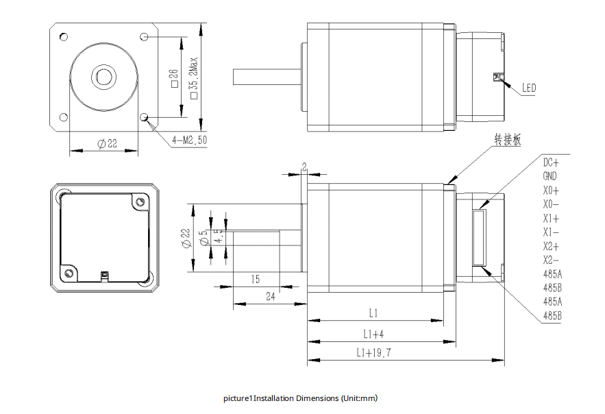 RS485 Bus Open-Loop  Integrated Stepper Motor IRS28M-32 1.4~2.1 DC(12~40) 28 48 5 20