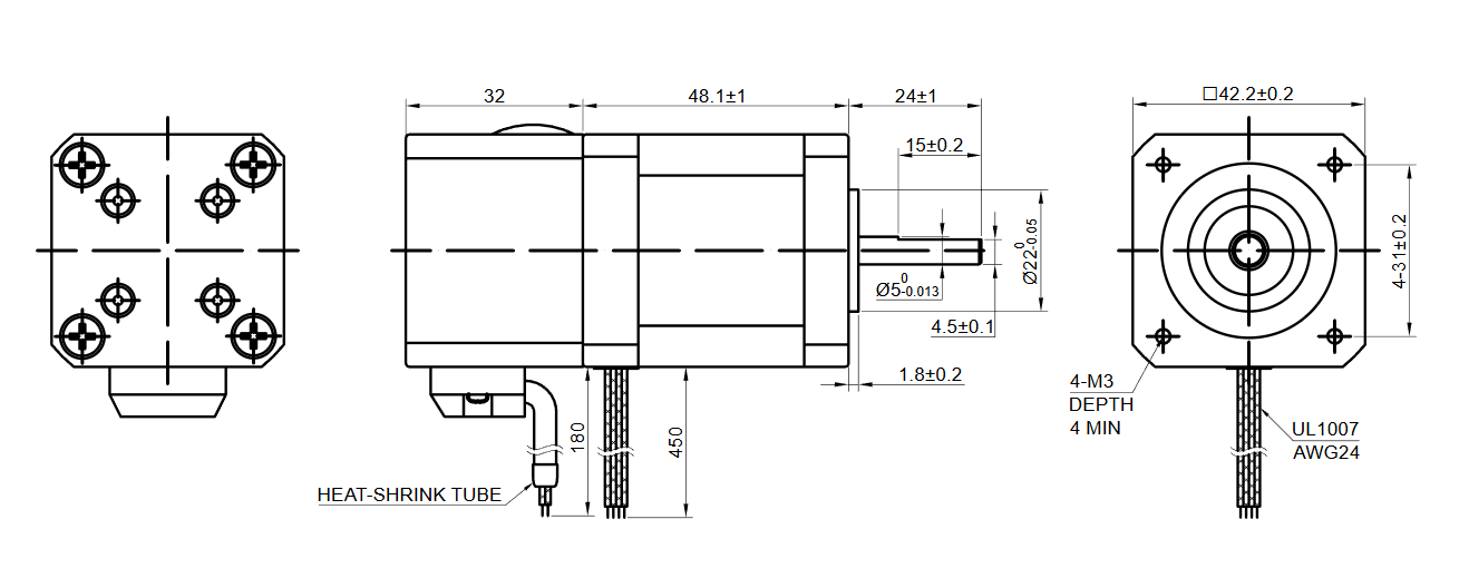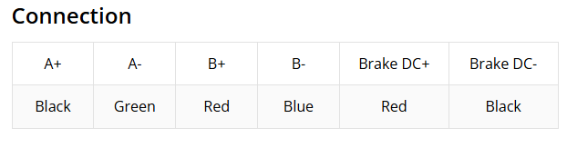 | Model | Frame Size (NEMA) | Length (mm) | Holding Torque (N.m) | Shaft Diameter (mm) | Shaft Length (mm) | Phase Current (A) | Phase Number | Lead Wires | Match driver |