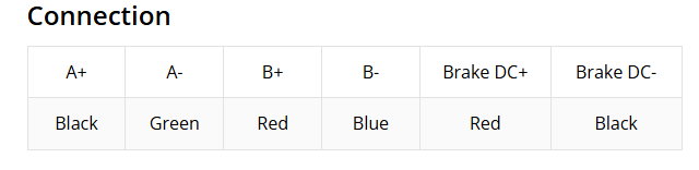 | Model | Frame Size (NEMA) | Length (mm) | Holding Torque (N.m) | Shaft Diameter (mm) | Shaft Length (mm) | Phase Current (A) | Phase Number | Lead Wires | Match driver |