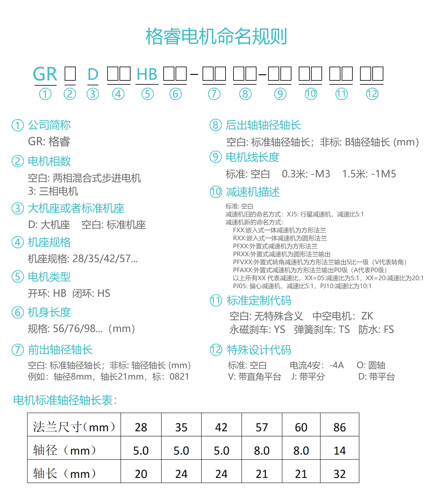 格睿开环步进电机常规型号: