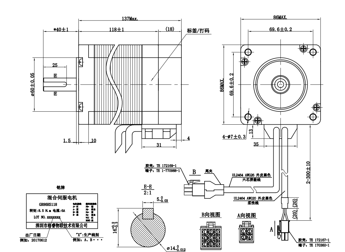 | GR86HS118-3M | 34 | 118 | 8.5 | 14 | 6 | 2700 | 1000 | HS86HV |