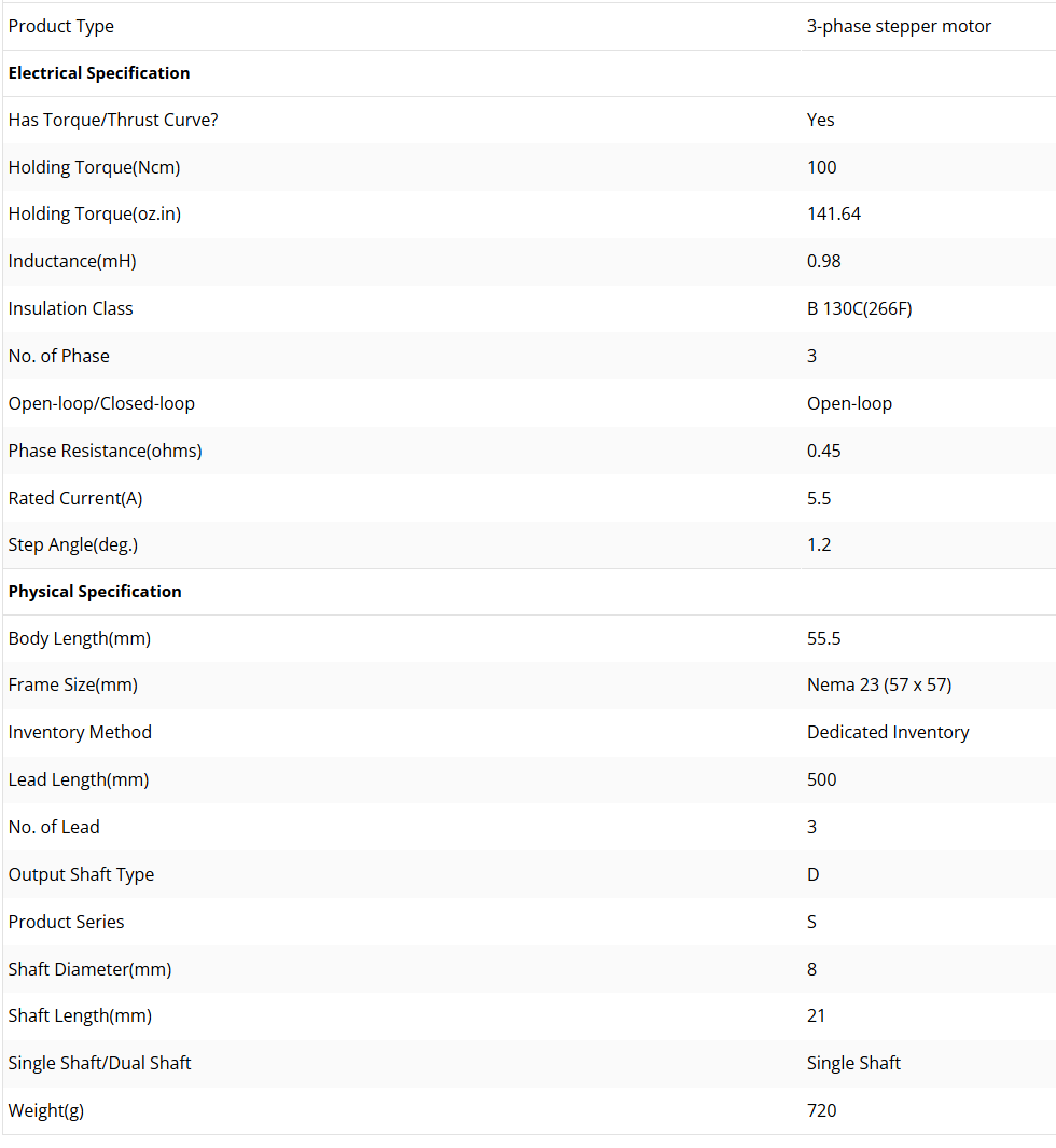 The three-phase open-loop stepper motor converts three-phase electrical pulses into angular displacement. It features a simple structure, low cost, and no feedback, and is commonly used in applications where high precision is not required.